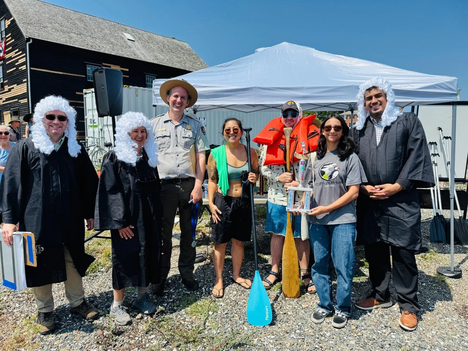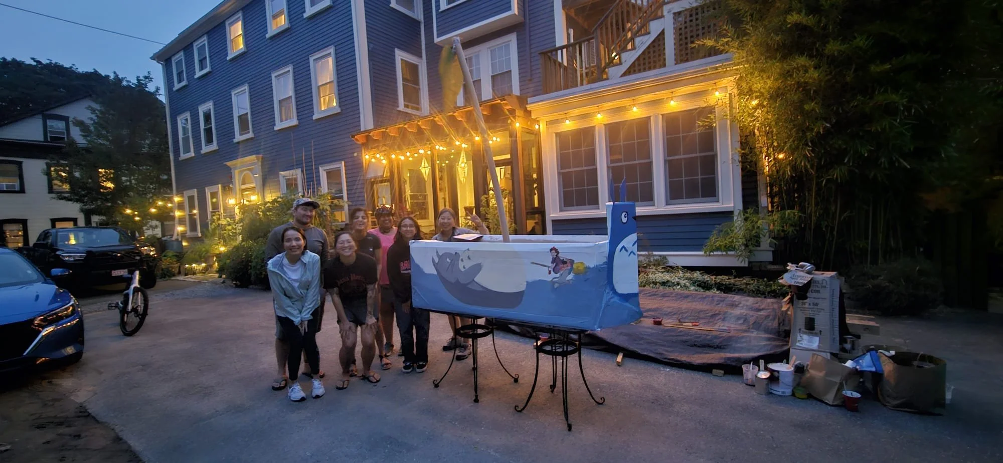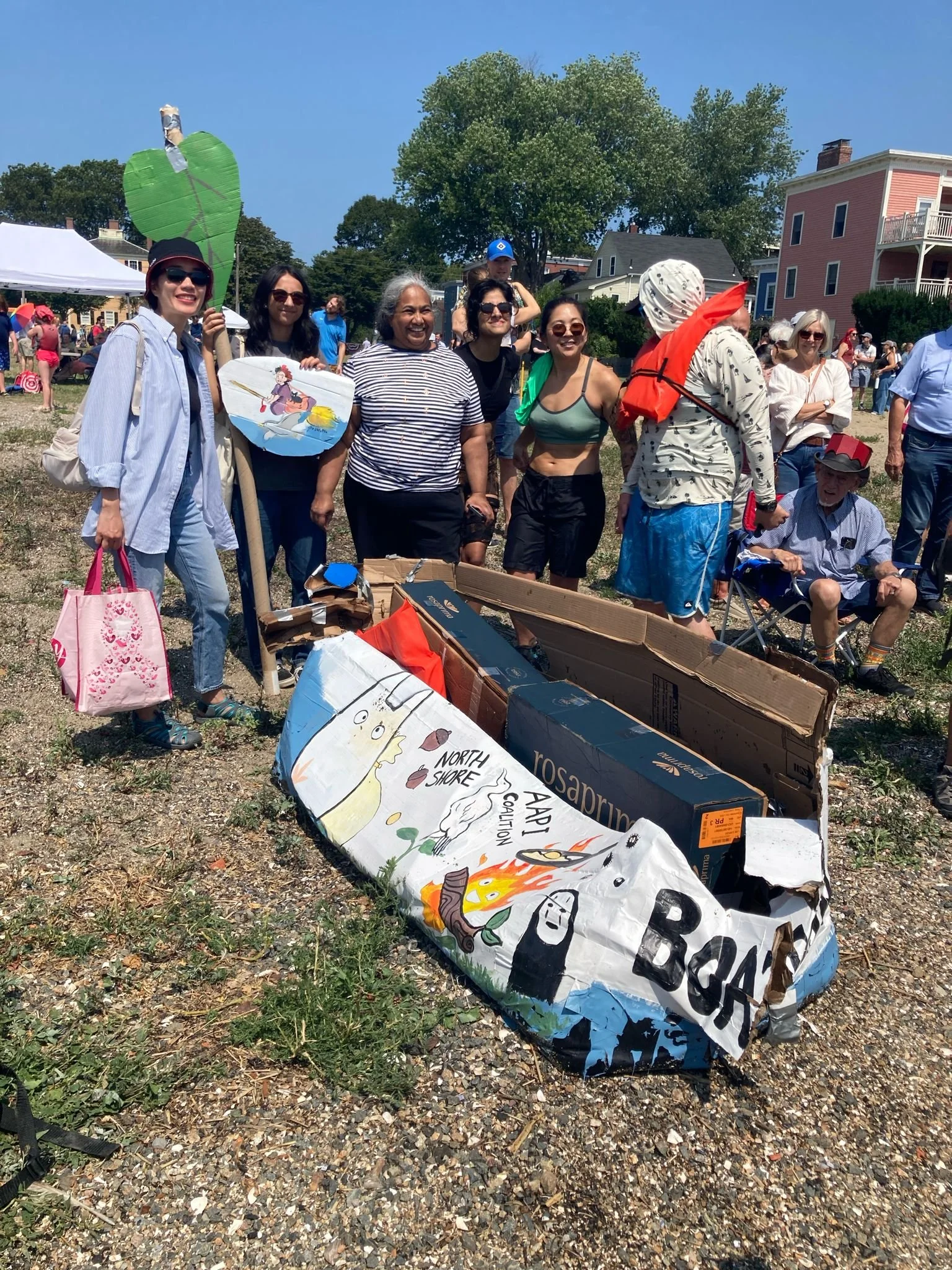 On Saturday, August 9th our boat building crew participated in the Great Salem Maritime Cardboard Boat Regatta for Salem’s Maritime Festival. Our boat, the Totoro/ Miyazaki themed Botoro, steered by Miyabe  and Paul won the Minnow Award for Most Courageous Crew and the Most Artistic Boat Award!