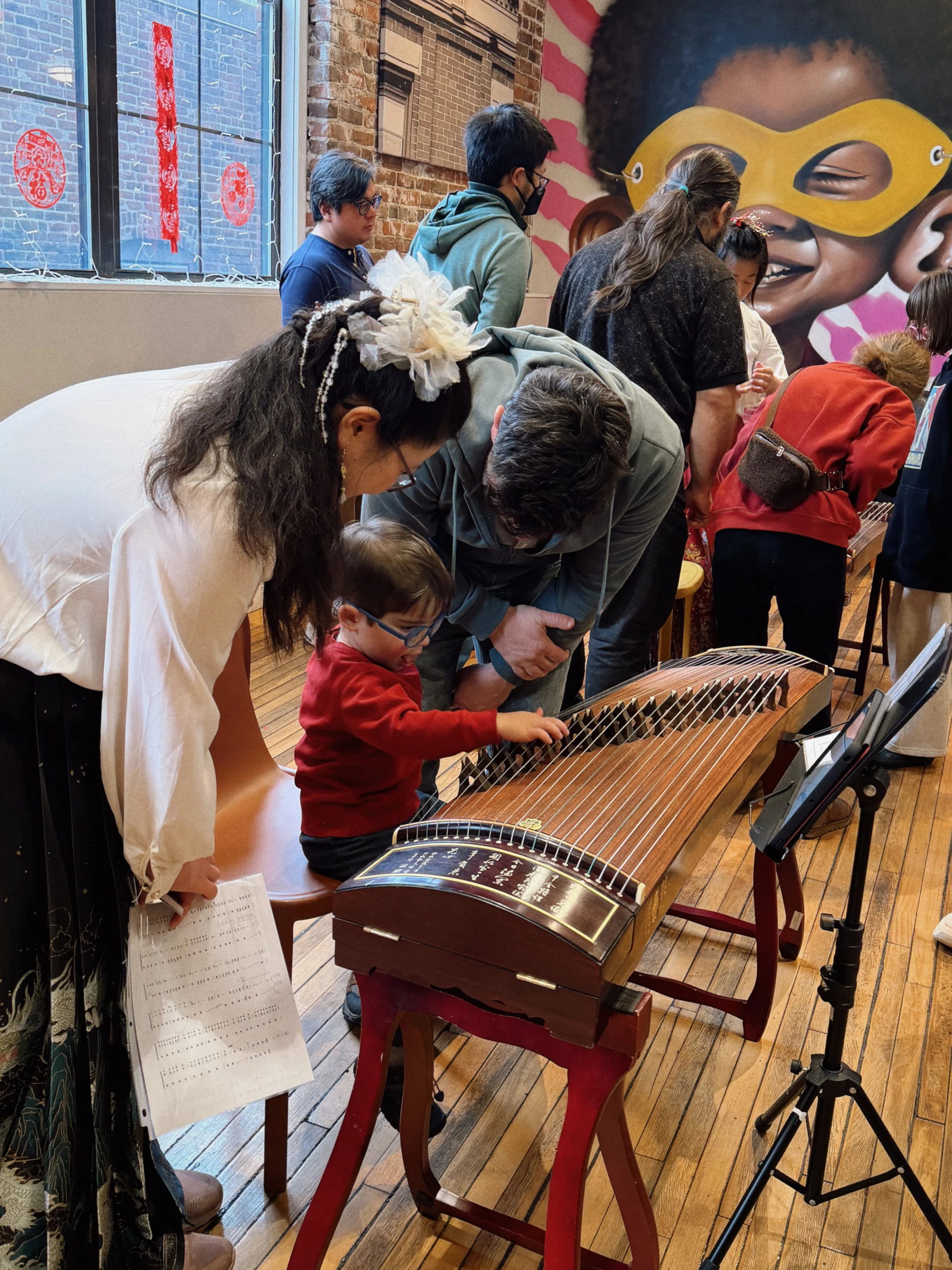 Annie Lin and her daughter Loren Liu from Koto Restaurant and Annie’s Asian Mart gave a beautiful Gu Zheng performance. Following the music, artist Rachel TonThat led a contemporary calligraphy workshop, where participants learned the basics of calligraphy and crafted their own lucky door signs, or chunlian, which are often displayed during Lunar New Year to invite good fortune.